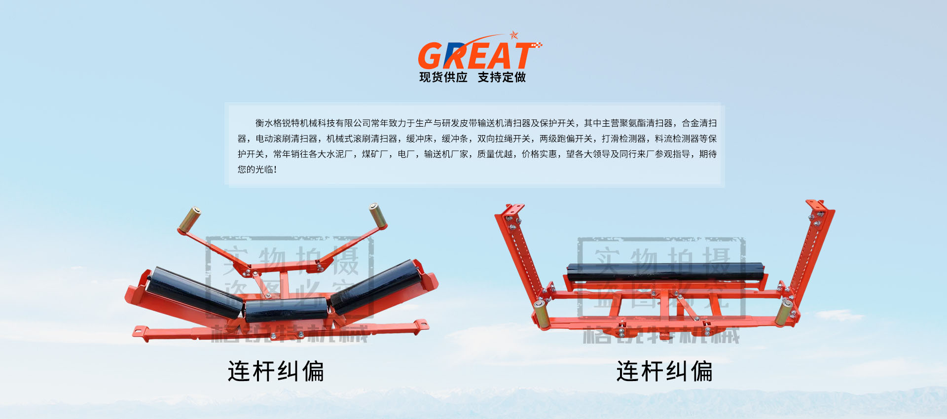 衡水格銳特機(jī)械科技有限公司常年致力于生產(chǎn)與研發(fā)皮帶輸送機(jī)清掃器及保護(hù)開關(guān),其中主營聚氨酯清掃器,合金清掃器,電動滾刷清掃器,機(jī)械式滾刷清掃器,緩沖床,緩沖條,雙向拉繩開關(guān),兩級跑偏開關(guān),打滑檢測器,料流檢測器等保護(hù)開關(guān),常年銷往各大水泥廠,煤礦廠,電廠,輸送機(jī)廠家,質(zhì)量優(yōu)越,價格實惠,望各大領(lǐng)導(dǎo)及同行來廠參觀指導(dǎo),期待您的光臨!??!